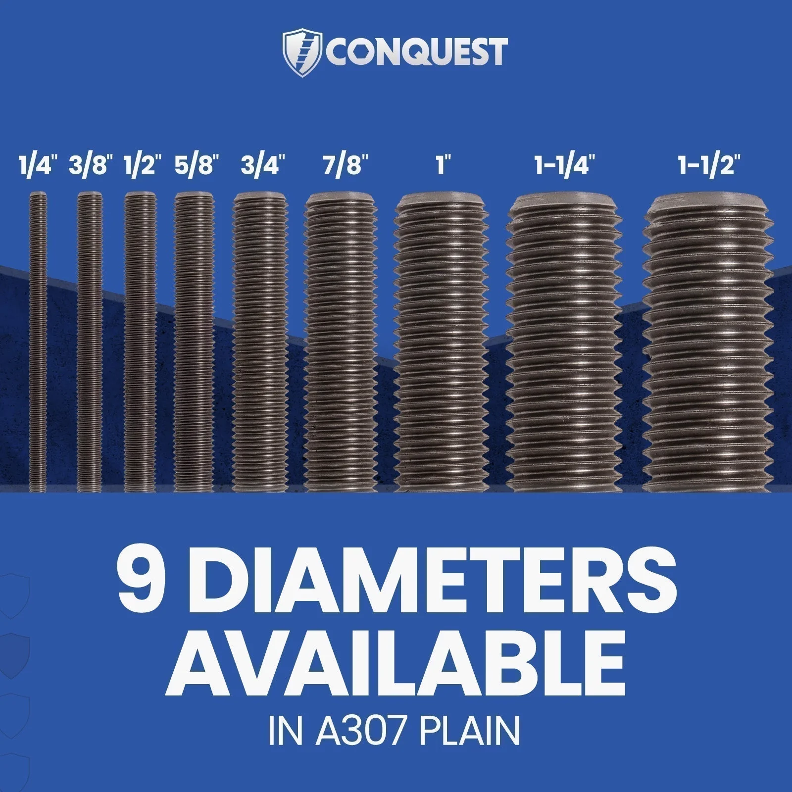 The Conquest 1/4"-20 x 1' A307 Coarse Threaded Rod is a reliable, cost-effective fastening solution for light-duty structural and general-purpose applications. Manufactured to ASTM A307 Grade A specifications, this threaded rod delivers consistent performance in non-critical joints where dependable strength and versatility are required.