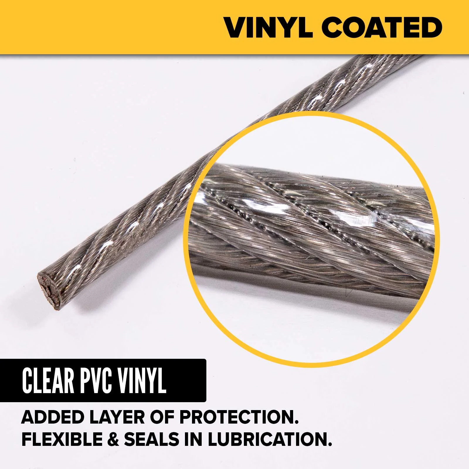 The vinyl coating adds another layer of protection, keeping dirt, moisture, UV-rays, and other potentially-damaging products away from your wire rope. It's extremely flexible, seals in lubrication, and is easier to handle than a standard aircraft cable.
