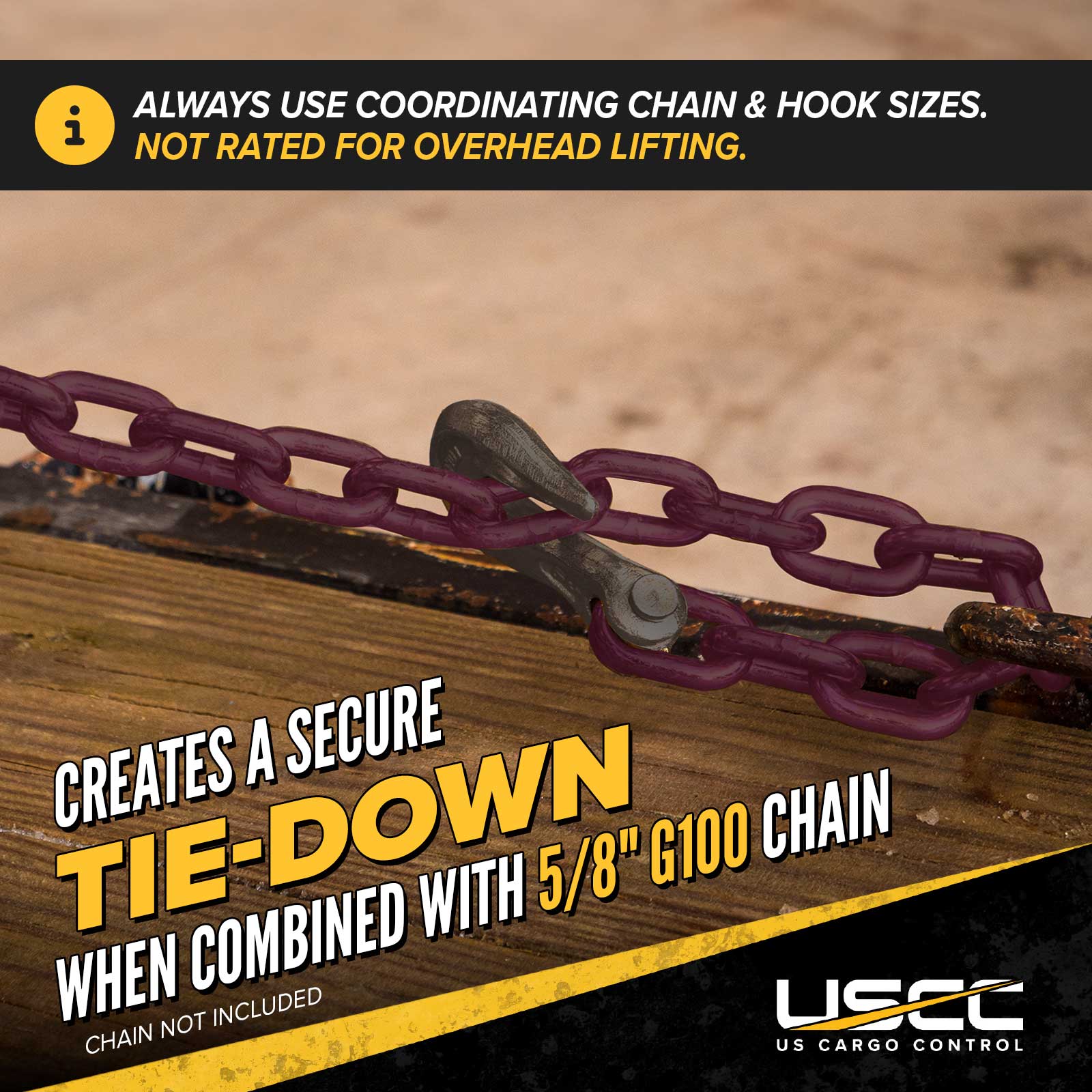 The cotter pin provides reliable attachments to chain and other accessories, along with fast replacement if the hook becomes damaged.