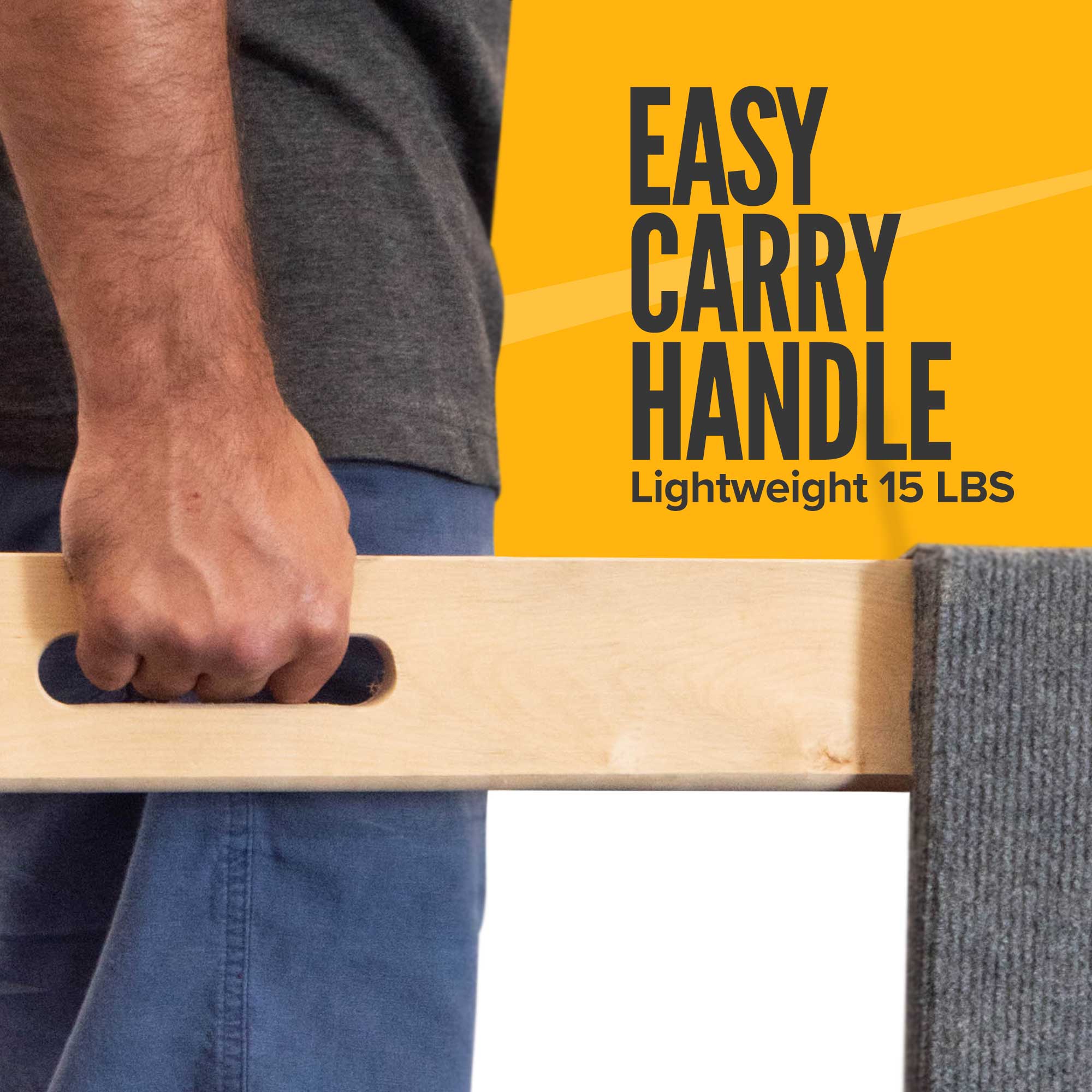 18"x 30" mover's dolly holds up to 1,000 lbs., making it easy to transport heavy and bulky items, appliances, boxes and more. Carpeting on the two raised ends offers cushioning and grip while also protecting walls and door frames from scuffs and scratches. Rugged 4" appliance dolly swivel wheels are non-marking so they're safe for carpet, tile, even hard wood floors. A handy cut-out makes it easy to carry.