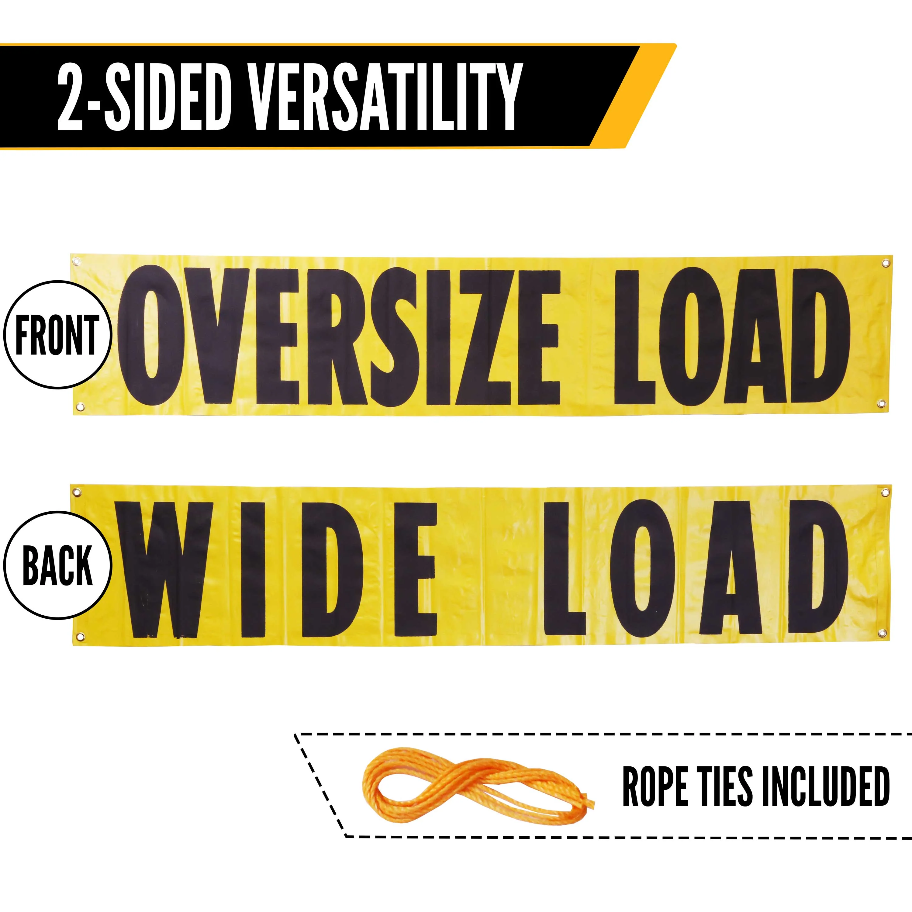 The Deluxe Oversize Load Kit contains everything needed for safe markings in oversize load hauling. Kit includes: (2) 84" x 18" Oversize/Wide Load Vinyl Sign Banner w/ Bungee Cords (OLWL-1884-BC), (2) 72" x 14" Oversize/Wide Load Vinyl Sign w/ Grommets & Rope Ties (OLB1472), (8) Safety Flag Magnet (SF-MAGR110), (4) Orange Jersey Mesh Safety Flag with Vinyl Welt: 18" x 18"- DOT Compliant (SF18-ORN-VW), and (4) Orange Vinyl Coated Mesh Safety Flag w/32" Dowel: 18" x 18"- DOT Compliant (SF18-ORN-D). Need a custom mix? Give us a call.