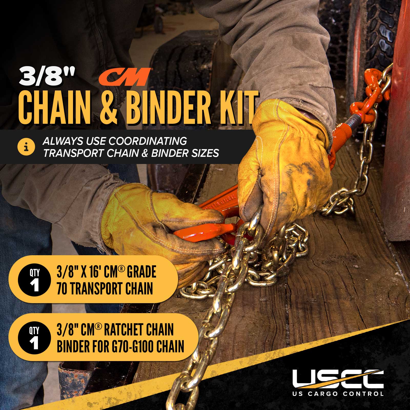 3/8" x 16' CM® Grade 70 Transport Chain and Binder Kit | Made in USA